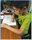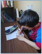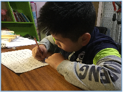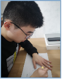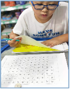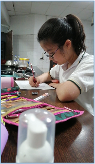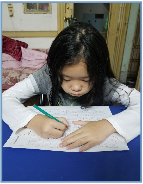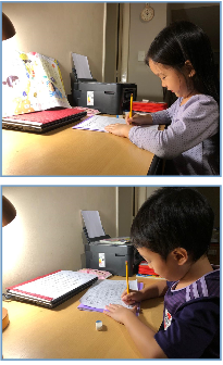 學生必須在家寫好老師指定內容文章於校方提供統一比賽用紙,拍照後寄給老師,老師統籌寄給校方,這是線上比賽最基本的學習,學生寫字時的拍照相片,較小的孩子須家長幫忙拍照,在在都是挑戰,也是家長關心輔助孩子,親子合作的絕佳機會。