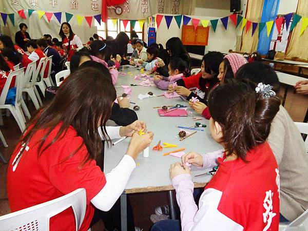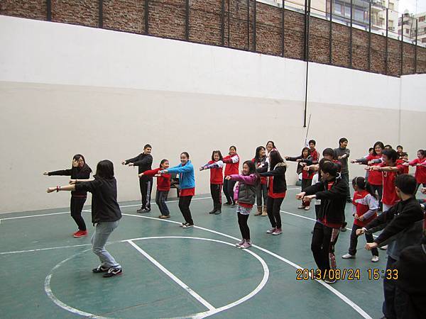 同一時間亦於操場舉行動態活動:扯鈴及忠義拳。教學的過程中格外顯出年輕學子們相互欣賞、珍惜的快樂時光。逐漸地,氣氛之熱絡逐步跳脫嚴肅的文化教學框架,不但青年大使為學生們高唱“快樂天堂”和“童年”兩首歌,愛育的學生們也邀約大姊姊們一起打籃球。無距離感的互動,使笑聲洋溢於整個校園內。